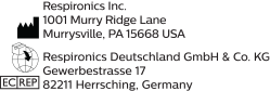 製造拠点の名称および住所:M/s Respironics, Inc.,1001 Murry Ridge Lane, Murrysville, PA 15668, 米国
